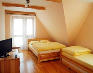 Pokój Nr 21 (Rodzinny) z Widokiem Na Giewont Pokój rodzinny dla 2 do 4 osób (z dostawką) z widokiem na Giewont.2-4 Osób, Łazienka w Pokoju, Zamykana Lodówka w KuchniW pokoju znajduje się:łazienka z kabiną prysznicową,umywalka,toaleta.Pokój posiada osobną, zamykaną na kluczyk lodówkę w kuchni. Kuchnia znajduje się w dolnej części Pensjonatu.Galeria Pokoju – zdjęcia po prawej stronie. Kontakt